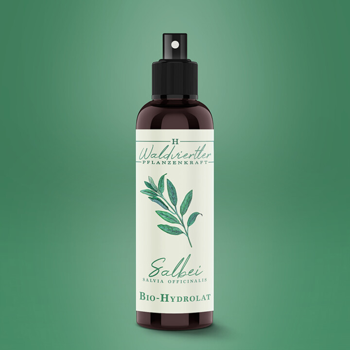 Bei einer beginnenden Mandelentzündung, Halsschmerzen, Husten, Schnupfen und Nasennebenhöhlenentzündung wird das Hydrolat als Gurgelwasser angewandt. Er ist auch ein zuverlässiger Helfer bei Parodontose, Zahnfleischentzündungen und bei Prothesenabdruckstellen. Für eine gute Schweißregulation ist der Salbei auch bekannt (für Deodorants und Fußsprays). Sei es übermäßiges Schwitzen, bei Nachtschweiß, Hitzewallungen in den Wechseljahren, bei nervösen Schweißausbrüchen oder schwitzt man aufgrund einer Schilddrüsenüberfunktion, verschafft Salbei eine Linderung. Als erfrischender Körperspray kann das Hydrolat 1:1 mit Pfefferminzwasser vermischt werden. Für eine Waschung werden 2 – 3 EL Hydrolat in 1 Liter Wasser gegeben. Weiters kann Salbei die müden Beine stärken.